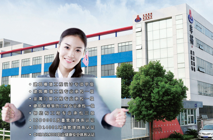 公司現(xiàn)具備建筑幕墻工程設(shè)計(jì)專項(xiàng)甲級資質(zhì)、建筑幕墻工程專業(yè)承包一級、建筑裝修裝飾工程專業(yè)承包一級、鋼結(jié)構(gòu)工程專業(yè)承包三級、建筑門窗行業(yè)資格產(chǎn)品制造一級、建筑門窗行業(yè)資格產(chǎn)品安裝一級、江蘇省標(biāo)準(zhǔn)化窗推廣證企業(yè)。